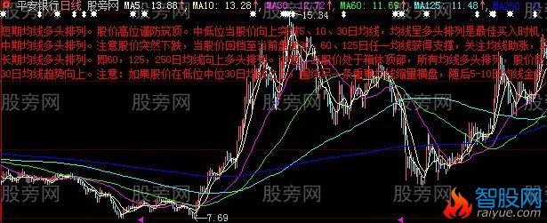 IF MSTATUS and (MA5 > MA10 and MA10 > MA30 and MA5 > MA30) THEN BEGIN DRAWTEXTABS(0,i*16,'短期均线多头排列。股价高位谨防筑顶。中低位当股价向上突破5、10、30日均线,均线呈多头排列是最佳买入时机;'),COLORRED,ALIGN0,LINETHICK1;