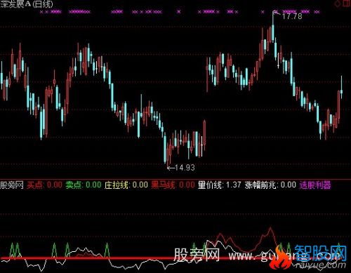 选股利器:IF(FILTER(VAR2E>0 AND VAR1C<2 AND 庄拉线>0 AND 庄拉线<1 AND 黑马线>0 AND 黑马线<1.5 AND VAR2E>0,5)=1,10,0),COLORFF00FF;