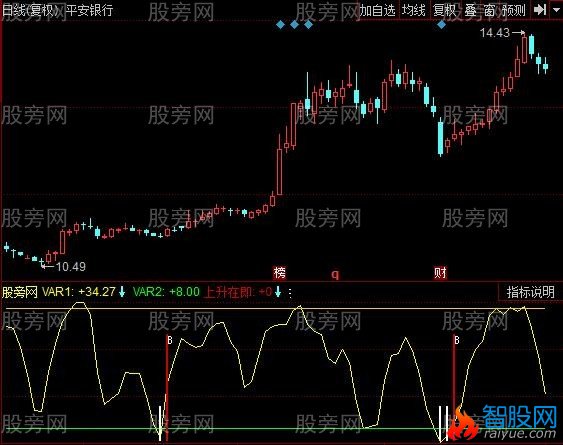 上升在即: IF(CROSS(VAR1,VAR2),80,0),STICK,COLOR0000CC,LINETHICK2;